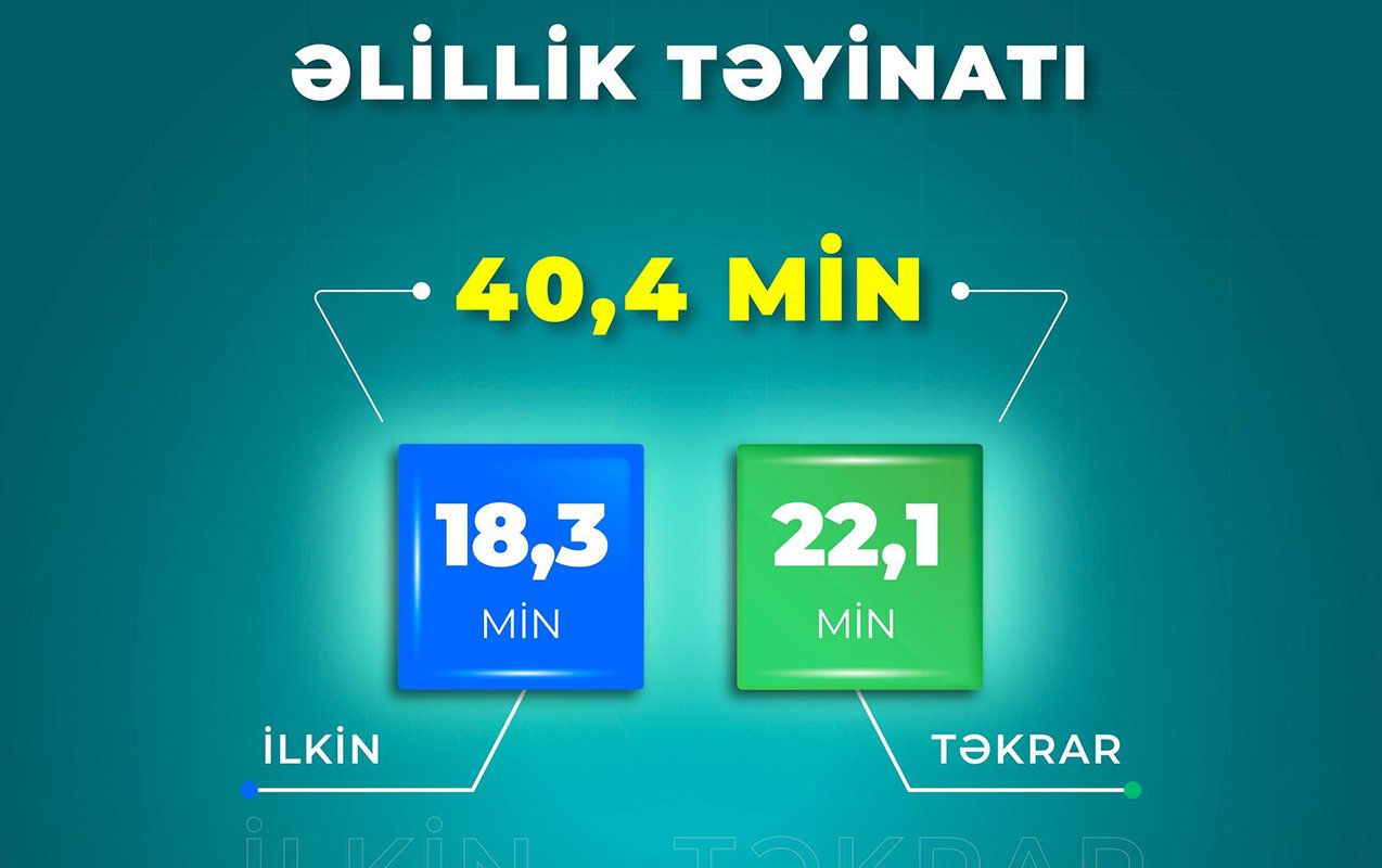 “Qafqazinfo” xəbər verir ki, onlardan 18,3 min şəxsə ilkin, 22,1 min şəxsə isə təkrar əlillik təyinatı aparılıb.