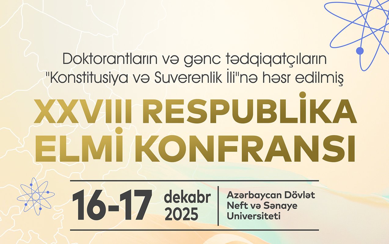 16-17 dekabr 2025-ci il tarixlərində Azərbaycan Dövlət Neft və Sənaye Universitetində doktorantların və gənc tədqiqatçıların XXVIII Respublika elmi konfransı (NASCO XXVIII) keçiriləcək.
