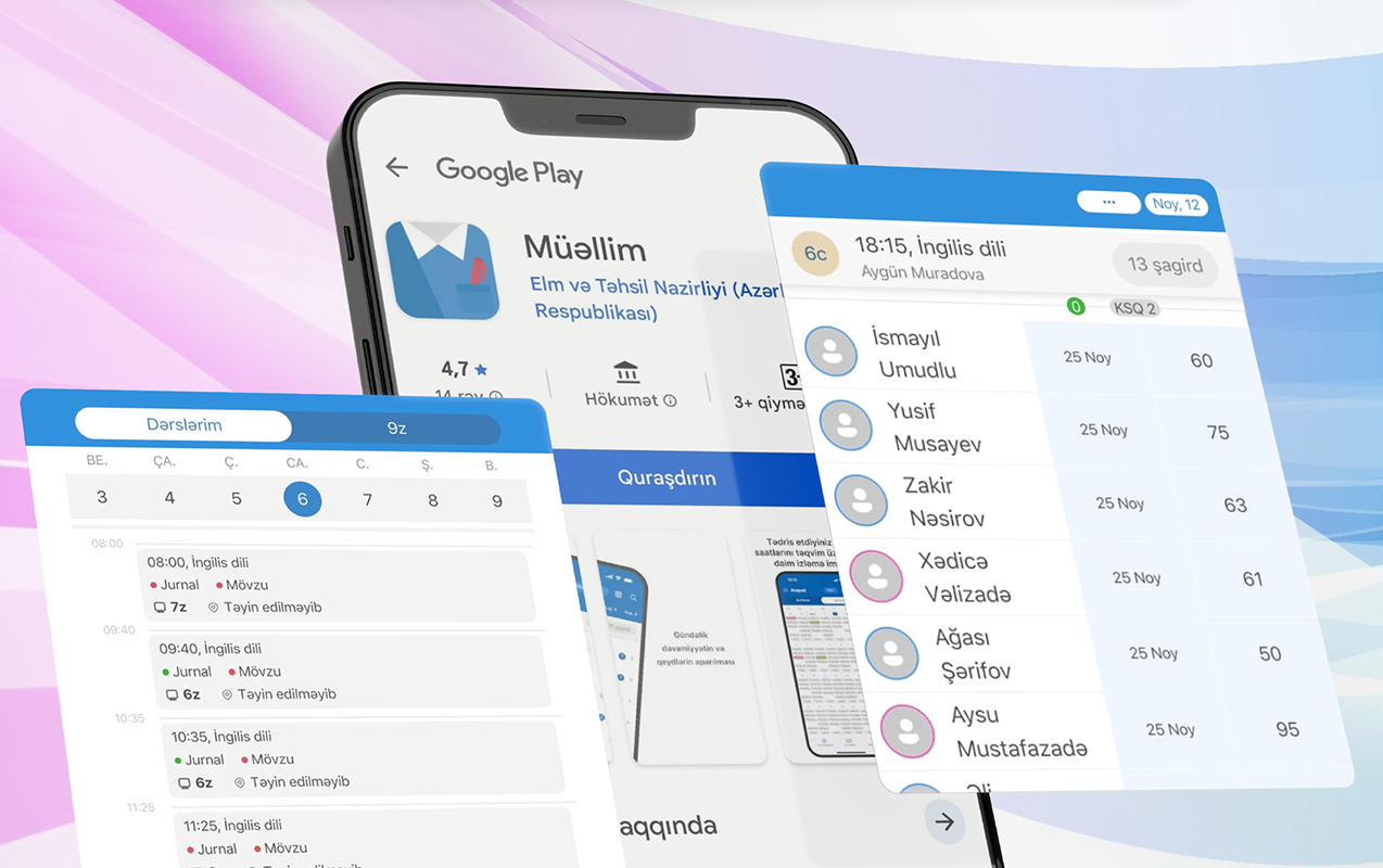 “Rəqəmsal məktəb” layihəsi çərçivəsində hazırlanan “Müəllim” tətbiqi mövcud elektron jurnalın funksional imkanlarını genişləndirir və istifadəçilərə sistemə mobil telefon vasitəsilə daha rahat və operativ çıxış imkanı yaradır.