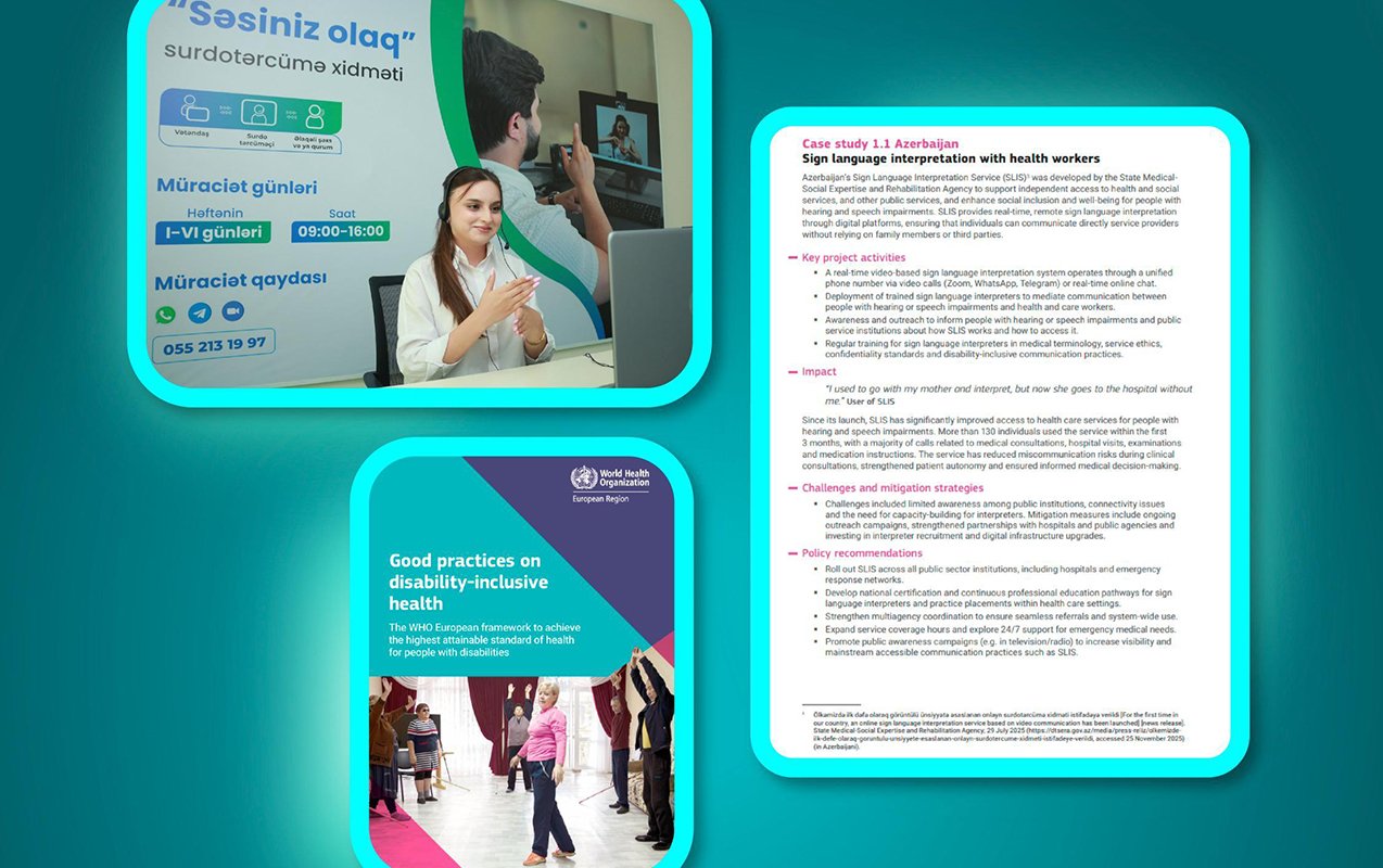 Əmək və Əhalinin Sosial Müdafiəsi Nazirliyinin tabeliyində Dövlət Tibbi-Sosial Ekspertiza və Reabilitasiya Agentliyinin “Səsiniz olaq” onlayn surdotərcümə xidməti Ümumdünya Səhiyyə Təşkilatı tərəfindən ən yaxşı təcrübə elan edilib.