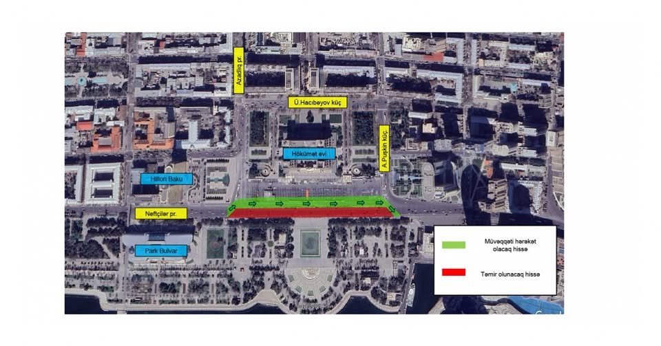 Bu gün saat 23:00-dan etibarən Azadlıq meydanının qarşısındakı yolda hərəkət məhdudlaşdırılacaq.