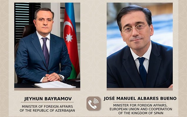 Xarici işlər naziri Ceyhun Bayramov ilə İspaniya Krallığının xarici işlər, Avropa İttifaqı və əməkdaşlıq naziri Xose Manuel Albares Bueno arasında telefon danışığı aparılıb.